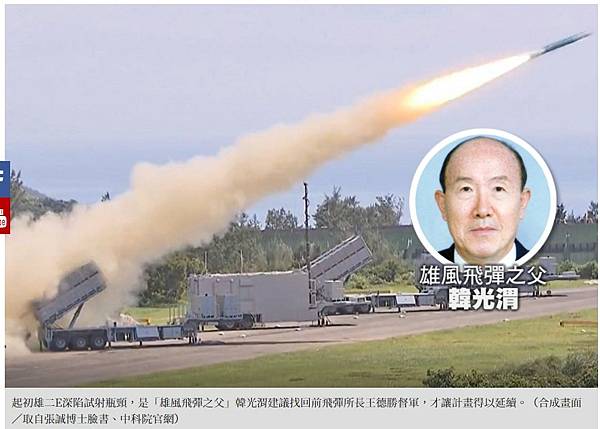 起初雄二E深陷試射瓶頸,是「雄風飛彈之父」韓光渭建議找回前飛彈所長王德勝督軍,才讓計畫得以延續。(合成畫面/取自張誠博士臉書、中科院官網)