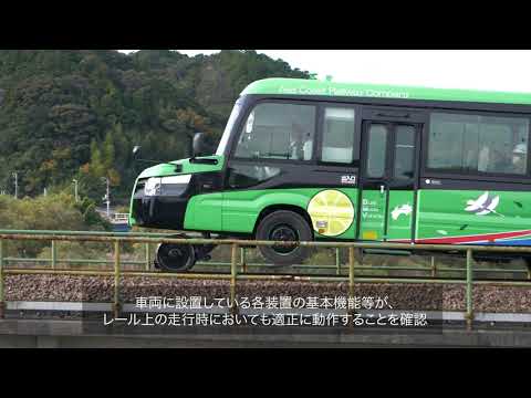 海陽町宣傳影片:「DMV是什麼?可以在馬路上跑的電車。DMV是什麼?可以在鐵軌上運行的巴士。」