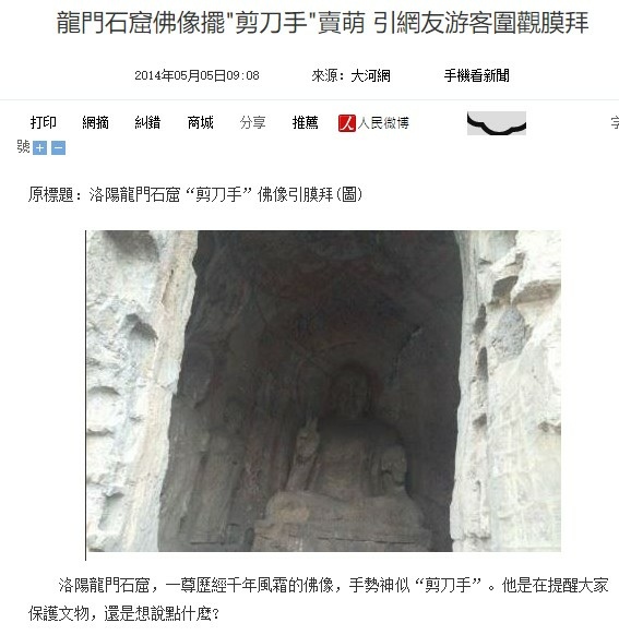 2014年05月05日龍門石窟佛像擺"剪刀手"賣萌 引網友游客圍觀膜拜--傳媒--人民網 https://bit.ly/3mODsn9