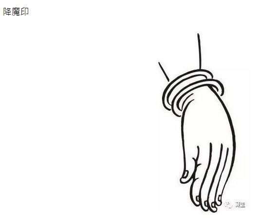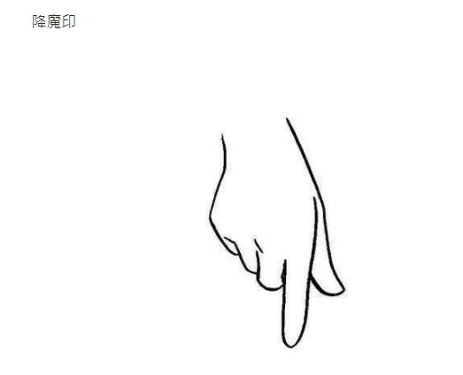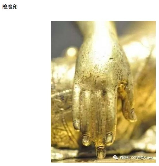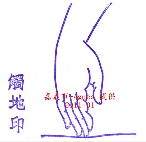 降魔印又稱觸地印,以右手覆於右膝,指頭觸地,以示降伏魔眾。
