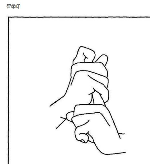 又稱菩提印或毗盧大智印,以兩手分別作金剛拳(以四指握拇指於掌中,稱為金剛拳),再以右拳握左手食指於胸前。此手印代表大日如來的無上智慧。
