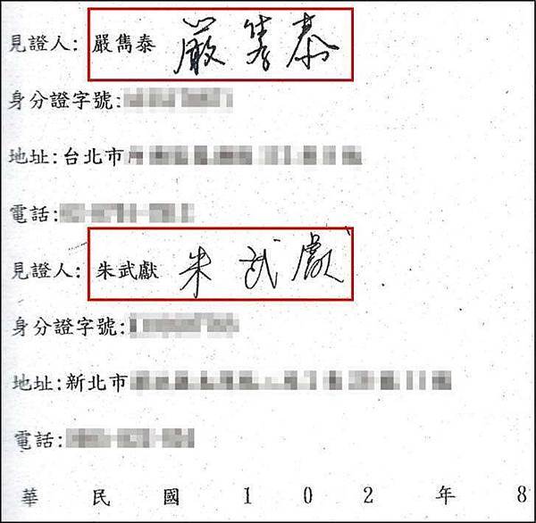 本刊取得土地交易合約,顯示嚴雋泰是全案見證人,足以證明他對買賣內容全都知情。(讀者提供)© 由 鏡週刊 提供 本刊取得土地交易合約,顯示嚴雋泰是全案見證人,足以證明他對買賣內容全都知情。(讀者提供)