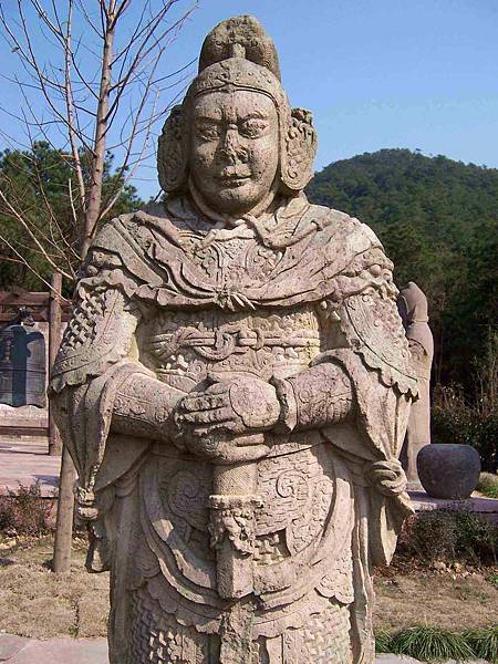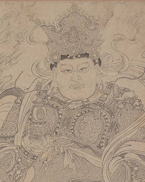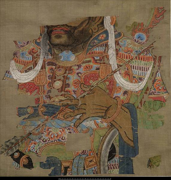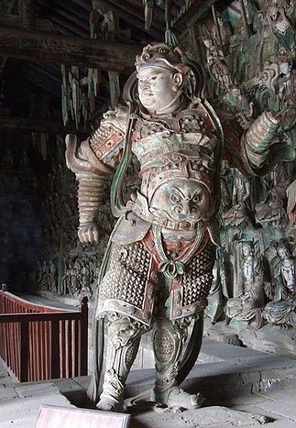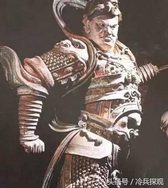 但是有一種甲制,從《唐六典》中記載始,宋、明以來歷代皇陵的石翁仲,寺廟中的神將,以山西雙林寺韋陀為代表(圖1),水陸畫(圖2 明 商喜《擒將圖》關羽)和大都採用「山文甲」(山紋甲)形式,其廣泛存在於壁畫、廟畫、雕塑之中,而至今出土資料中從無出現,那麼這種甲在中國武備歷史中真的出現過嗎?