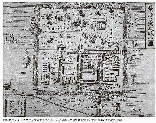 明治29年(西元1896年)臺灣臺北城之圖。 圖/取自《穿越時空看臺北-古地圖舊影像文獻文物展》