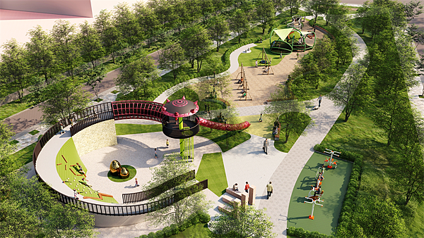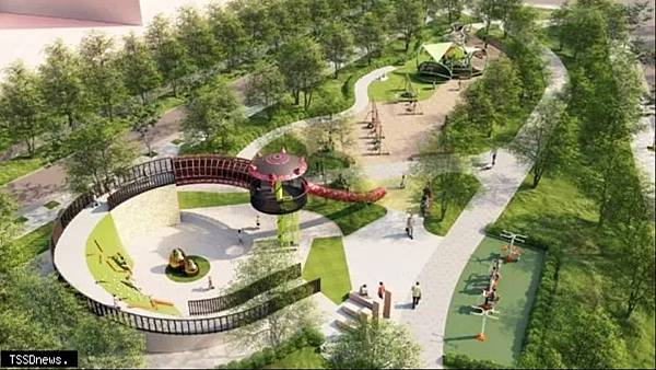 新竹縣竹北市公兒九公園、高鐵公七及高鐵兒四公園遊戲場設置工程,今日舉辦動土典禮,圖為竹北兒四公園完工示意圖。圖/新竹縣政府提供