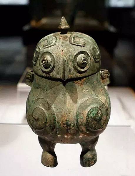 貝鴞卣 商代晚期青銅提梁卣器形 貝鴞卣,通高17.1cm,寬14.2cm,重1.18kg。