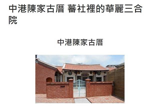 中港御舍營所,北白川宮能久親王宿於中港陳汝厚宅。