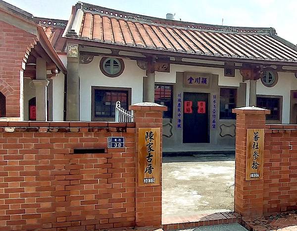 正身大門上斗大的「穎川堂」代表的是陳姓家族的堂號。