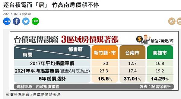 「護國神山」的台積電+台積電設廠所在行政區平均成交單價 https://bit.ly/3Udt3SA