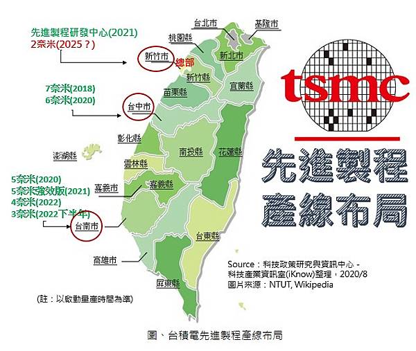 目前最先進的2奈米廠,2025年也將在台灣大量商用投產2奈米製程;2023年7月台積電則在台灣成立全球唯一的研發中心,半導體產業在全球佈局時,台灣作為生產關鍵重心的方向不變。