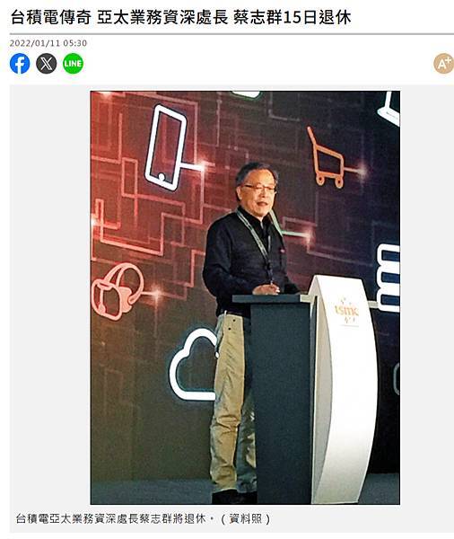 台積電傳奇 亞太業務資深處長 蔡志群15日退休 - 自由財經