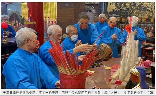 玉清宮循往例於除夕跨大年初一的子時,向恩主公求問來年的「五穀」及「人民」,今年都是中平。(讀者提供)