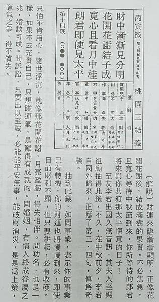商籤是上上籤,籤詩「東方月上正嬋娟,請客雲遮月半邊,莫道圓時還又缺,須教缺處復重圓」。