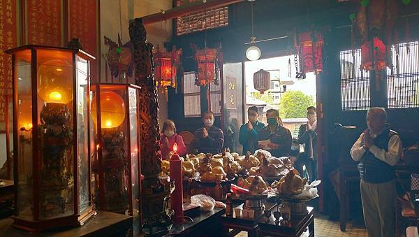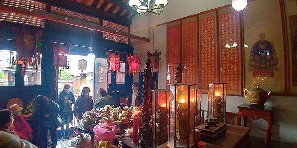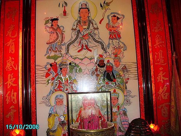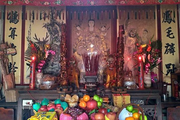 還有上層繪有觀世音菩薩,中層繪有天上聖母、玄天上帝、關聖帝君,下層土地公、灶君的「家堂六神」。