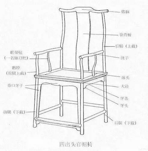 官帽椅分「四出頭官帽椅」和「南官帽椅」兩種。關於的名稱之別,在古代還有個很好玩的說法。