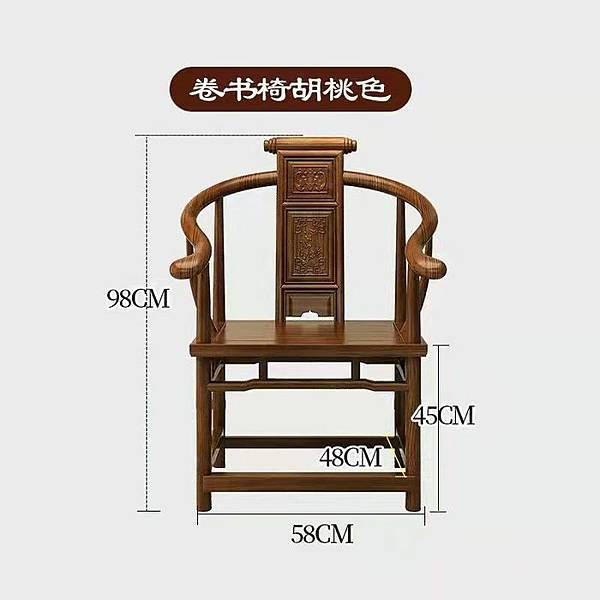 官帽椅的一般座高為520cm左右,不易使腰部疲勞。而且前腿下截之間設踏腳板,緩解了活動的不足。官帽椅的一般座寬為48cm以上,也完全符合扶手椅的座寬必須≥46cm的標準。