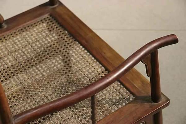 南官帽椅,因在南方使用較多之故,南方工匠又稱之為「文椅」。其最大的特點就是搭腦和扶手兩端不出頭,圓潤拐角,給人優雅圓渾的感覺。