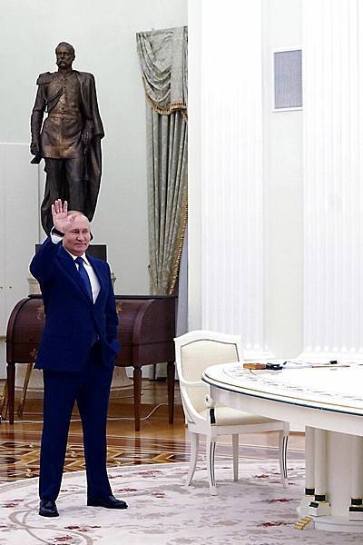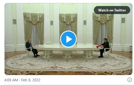 俄法元首會談,4米長桌成網民迷因素材。AP圖片https://www.bastillepost.com/hongkong/article/10123020-俄法元首會談-4米長桌成網民迷因素材 https://bit.ly/3uBzz9F