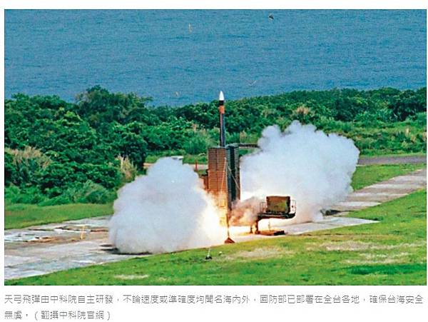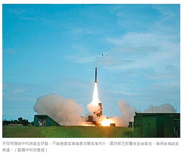 天弓飛彈由中科院自主研發,不論速度或準確度均聞名海內外,國防部已部署在全台各地,確保台海安全無虞。(翻攝中科院官網)