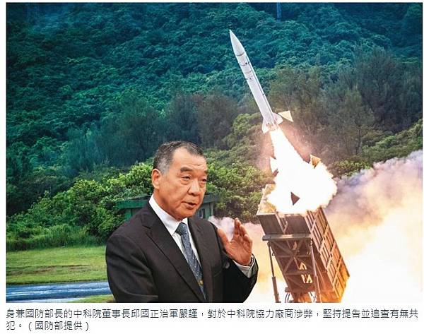 身兼國防部長的中科院董事長邱國正治軍嚴謹,對於中科院協力廠商涉弊,堅持提告並追查有無共犯。(國防部提供)