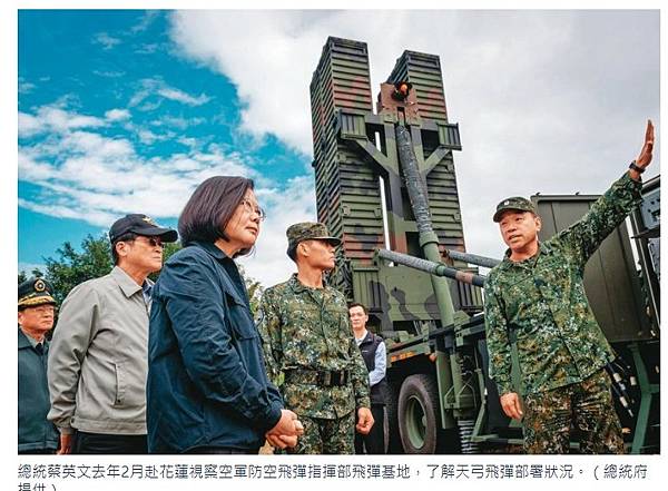 總統蔡英文去年2月赴花蓮視察空軍防空飛彈指揮部飛彈基地,了解天弓飛彈部署狀況。(總統府提供)