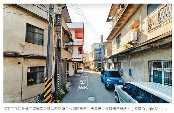 標下中科院數億元軍購案的豐益國際聯合公司藏身新竹市巷弄,外觀毫不起眼。(翻攝Google Maps)
