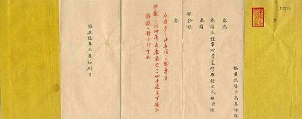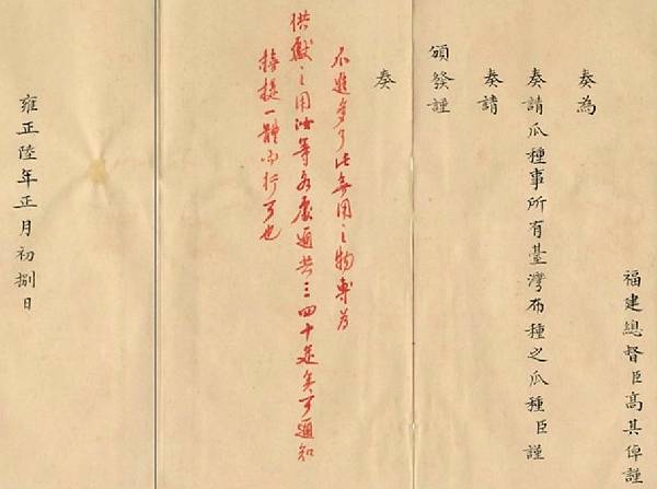 雍正六年元月初八日,福建總督高其倬奏摺,奏請頒發台灣布種瓜種摺。圖/取自故宮臉書粉專