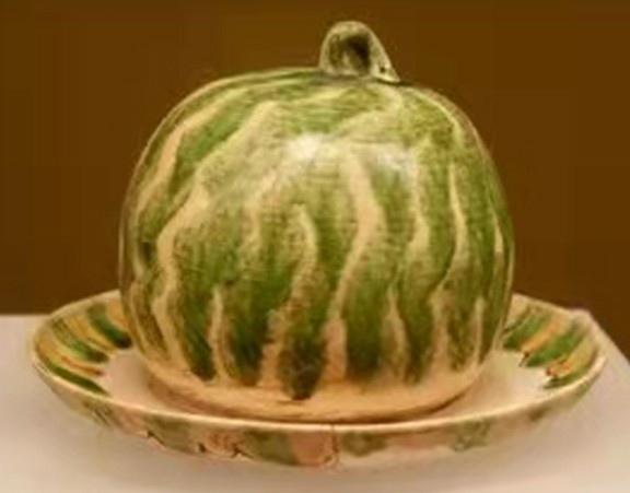 “夏果初收喚綠華。冰盤巧簇映金瓜。”