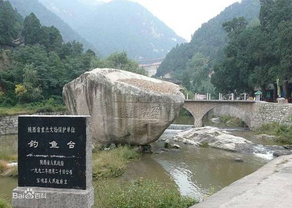 姜子牙釣魚台,省級風景名勝區和省級重點文物保護單位,位於陝西省寶雞市東南37公里處的磻溪峽谷之中,南依秦嶺,北望渭水,是一處享譽海內外的著名景點。釣魚台歷史悠久,景色優美,是人類最早有文字記載垂釣的第一處聖跡、故有「中國第一釣台」的美譽。這裡曾因西周名士姜子牙隱居垂釣、周文王訪賢、子牙興周滅商為周朝奠基808年江山的故事而得名。「太公釣魚,願者上鉤」「任憑風浪起,穩坐釣魚台」「寧可直中取,不向曲中求」等歷史典故都源於此地。