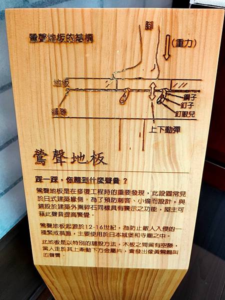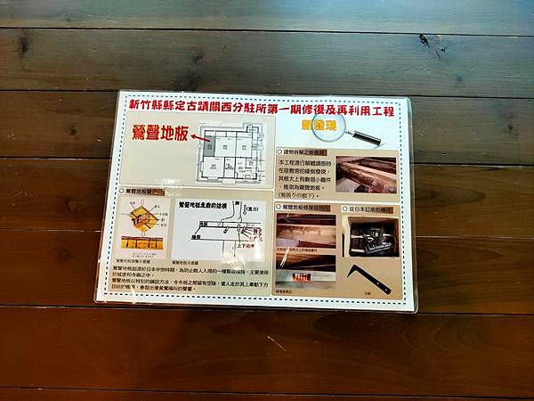 文化局長張宜真表示,關西分駐所為竹縣唯一警察派出所的古蹟,關西分駐所興建於1912年(明治35年)代,有別於日式木造和風樣式,是具有洋式風格的加強磚造建築,除保有洋式風格的建築外,還有完整的日式木造宿舍群。在所長宿舍修復過程中發現緣側的走廊地板為「鶯聲地板」,只要有人在地板上行走,就會牽動地板下特殊釘子的機關,而發出像黃鶯鳴叫的聲音,與日本京都二条城内的二之丸御殿的地板相同,是為了防範刺客的侵入而設計的。