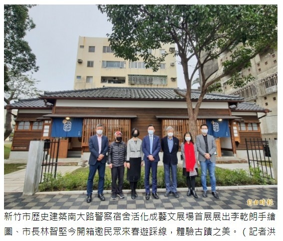 新竹市歷史建築南大路警察宿舍活化成藝文展場首展展出李乾朗手繪圖、市長林智堅今開箱邀民眾來春遊踩線,體驗古蹟之美。(記者洪美秀攝)