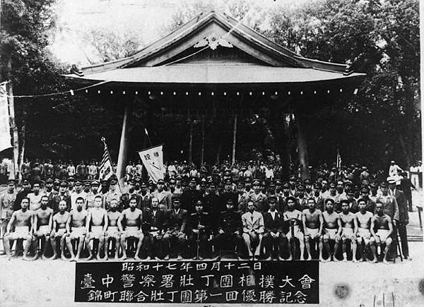 1937年4月,日本侵略者為了鞏固在台灣的統治地位,開始對台灣地區進行軍國統戰體制。經常舉辦青少年,壯年,甚至婦女的防禦演習和健康競賽等。本圖是舉辦的壯丁團相撲活動。