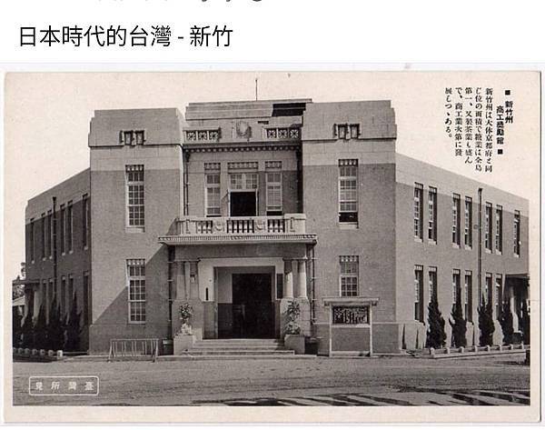 新竹州商工獎勵館 新竹州商工獎勵館最初稱為新竹州商品陳列館,在1928年11月藉昭和天皇的御大典紀念事業而動工,在隔年9月完工,位於新竹市榮町一丁目38番地,為一棟兩層樓的磚造建築,由神田原壽、若松佐設計。 1932年底改稱新竹州商工獎勵館。