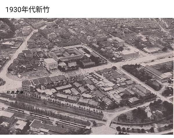 本圖出自《新竹市大觀》,第五頁。照片為新竹郡役所暨新竹警察署,原址位於今武昌街、西門街口之土地銀行新竹分行,今已不存。