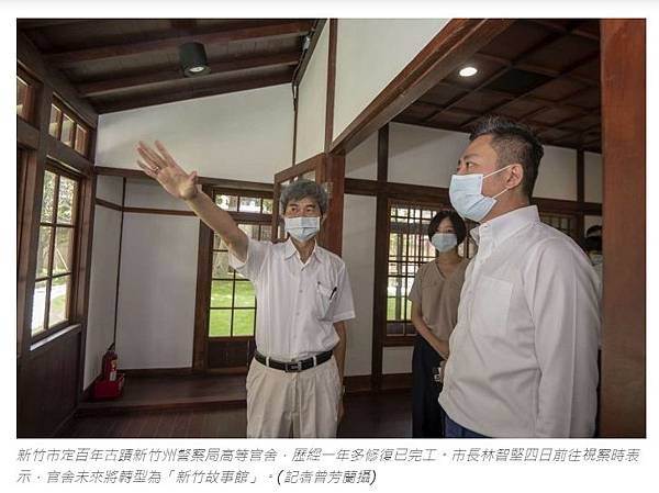 2016年新竹市府公告新竹州警察局高等官舍為市定古蹟,經歷調查研究、規劃設計,2020年3月啟動修復工程,投入3380萬元,於今年6月完成修復,未來將以促參的方式委外營運,採複合式經營,除具餐飲功能外,也將作為新竹故事館,展示新竹歷史與文化,預計明年上旬開館營運。