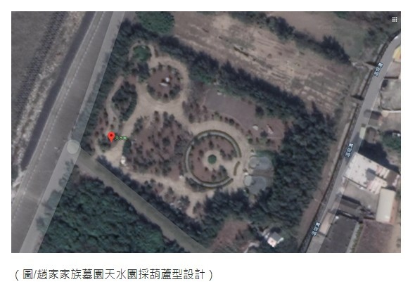而家族墓園內的布置也大有巧思,從衛星圖上不難看出兩個相連的圓緊挨在一起呈葫蘆狀,為葫蘆穴位,有吸納天地福澤的意思,面海可把水吸進來,而水在風水為運勢流轉、財運等不可或缺的元素之一,也難怪篤信風水的趙藤雄先生會看上這塊地。