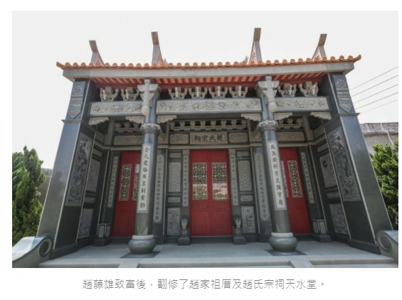 趙藤雄致富後,翻修了趙家祖厝及趙氏宗祠天水堂。