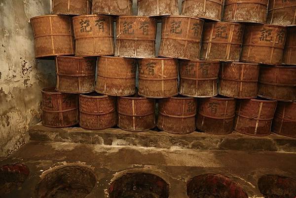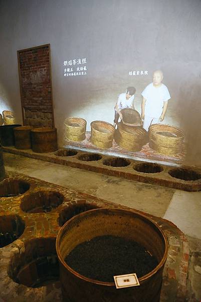 走入新芳春行和有記名茶還保存下來的「焙籠間」,首先入目的是兩兩一列、以紅磚圍成的焙窟,每窟深入地下約六十公分。焙籠則是以竹編製,略有腰身的中空圓柱體,內部中段有篩網,盛裝茶葉平鋪其上,以隔絕火源。