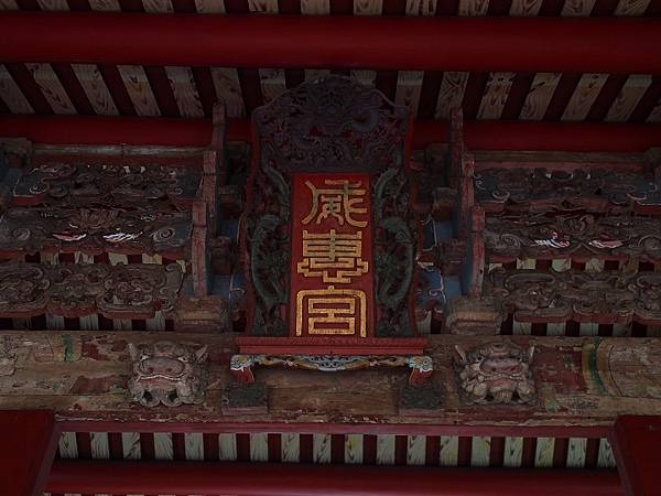 威惠宮的牌樓斗栱與聖旨牌、正門有一對石獅(2012.07.08陳玟瑜 拍攝)