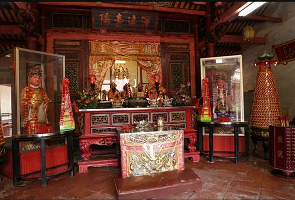 後殿供奉開漳聖王的夫人,左室供奉觀音菩薩,右室供奉聖王廟創廟及修建有功人員的長生祿位