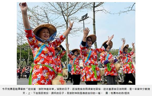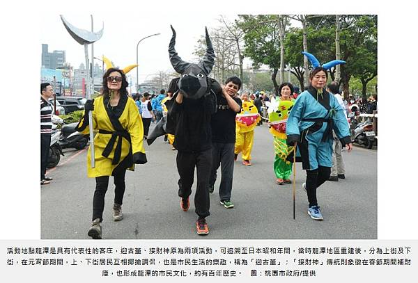 今天桃園是龍潭舉辦「迎古董、接財神嘉年華」活動的日子,該活動結合兩項當地習俗,迎古董源自日治時期,是一年當中少數幾天,上、下街居民裝扮、調侃的日子,而接財神則是傳統信仰的一種。 圖:桃園市政府/提供
