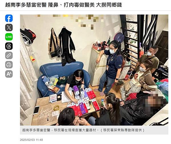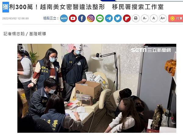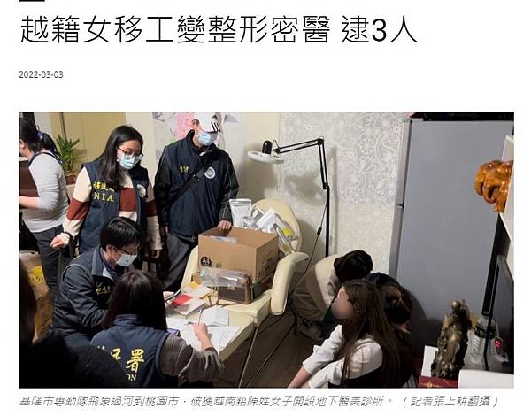 移民署破獲地下醫美診所 越南美女密醫替人整形牟利逾300萬 - 社會 - 自由時報電子報 https://bit.ly/34drY6I