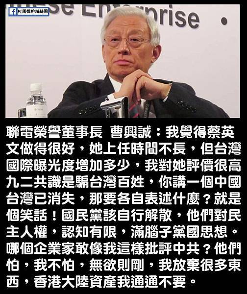 日前曹興誠宣布要捐出高達30億元新台幣,做為反制中共的費用,引發熱議。說起曹興誠,個性強烈、直言不諱,有著大砲性格,其實早期曾在報上刊登廣告,提倡「兩岸和平共處法」而被視為親中派,但近年來反共立場鮮明,外界多認為這與他領軍聯電到中國投資和艦案失利有關,曹興誠曾說當時看遍中國高層做事嘴臉,因而「認清中國」。