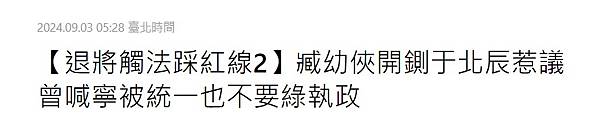 【退將觸法踩紅線2】臧幼俠開鍘于北辰惹議 曾喊寧被統一也不要綠執政 - 鏡週刊 Mirror Media