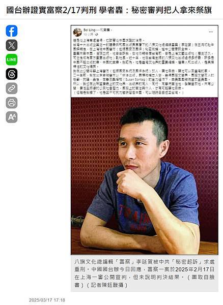 國台辦證實富察2/17判刑 學者轟:秘密審判把人拿來祭旗 - 政治 - 自由時報電子報