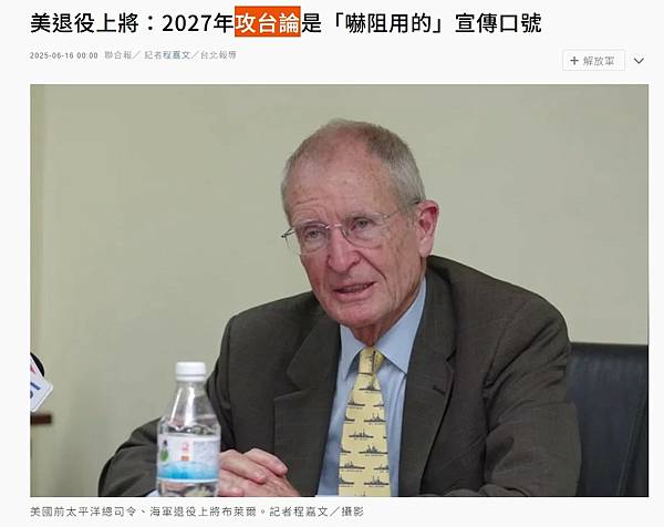 美退役上將:2027年攻台論是「嚇阻用的」宣傳口號 | 軍事 | 要聞 | 聯合新聞網