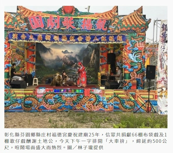 好壯觀!66棚布袋戲綿延500米 酬謝芬園福德宮土地公