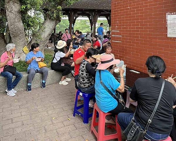 從員林市來參拜的張姓婦人說,久聞福榕宮土地公請吃泡麵名聲,她是第一次來,看著大家沖熱水、吃碗麵的景象十分有趣,參拜土地公後順便吃泡麵,還可以補財庫。