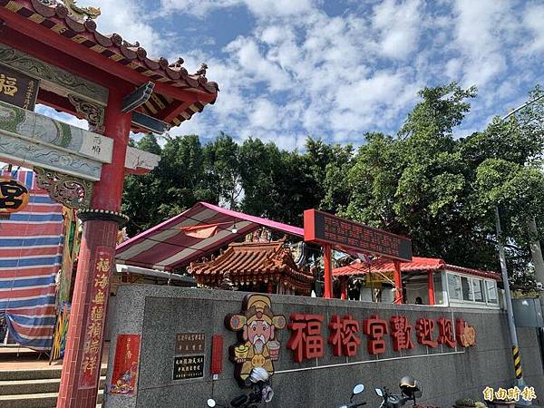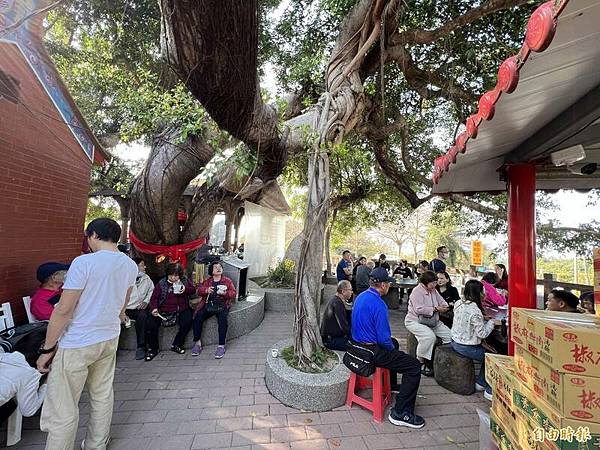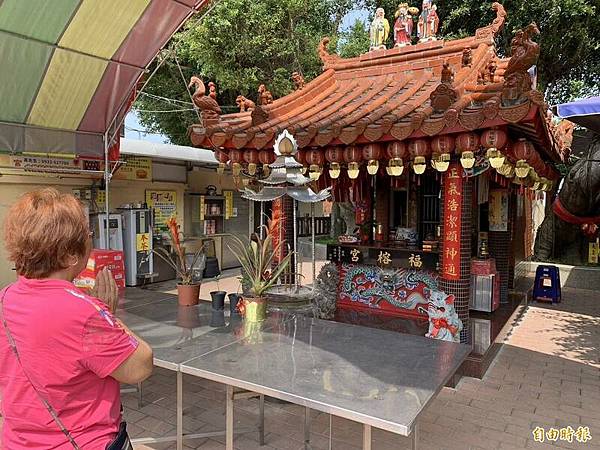 彰化縣芬園鄉大竹村福榕宮「土地公請吃泡麵」爆紅,香火鼎盛。 (記者湯世名攝)