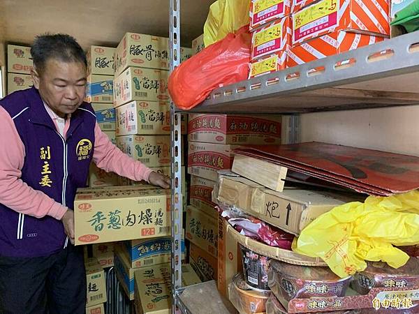 南投石龍宮大火,遊客無泡麵可吃,芬園大竹福榕宮副主委許池沼說,他們會增加提供泡麵讓信眾食用。 (記者湯世名攝)